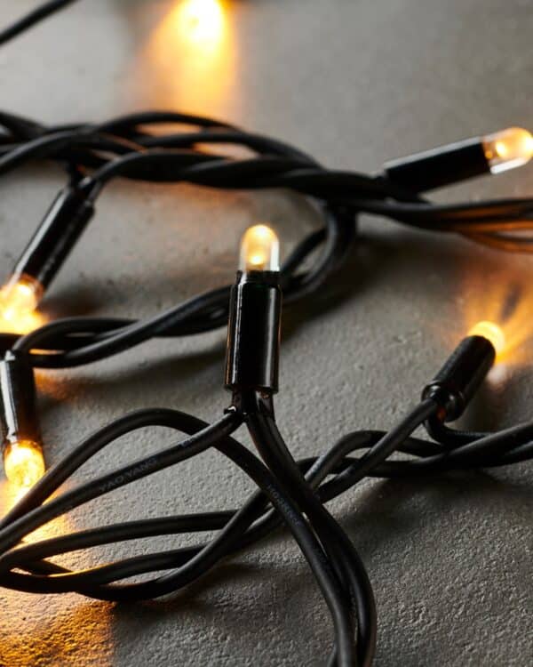 Sirius Tech-Line suppleringslyskæde med 300 LED lys. Lyskæden er 30 meter og har en kraftig sort 230 Volts ledning. Lysene giver et varmt hvidt